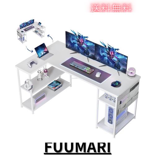◆商品名:YeTom l字デスク ゲーミングデスク デスク 幅150cm pcデスク コーナーデスク 棚板高さ調節可能 収納袋付き L字型 PC 勉強机 作業 在宅勤