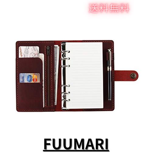 CEETOL システム手帳 本革ノート 職人 手作り A6 6穴 ペンホルダー 付 本革 ビジネスノート スケジュール帳… (赤-2)