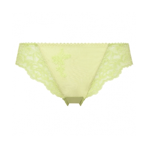繊細な花柄編みレースをサイドからヒップにかけてふんだんに使用したレーシーなデザインが魅力的。