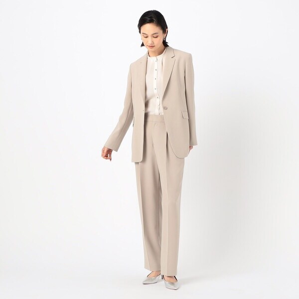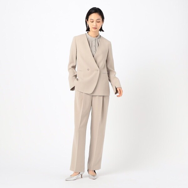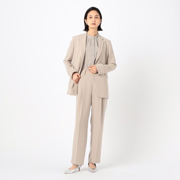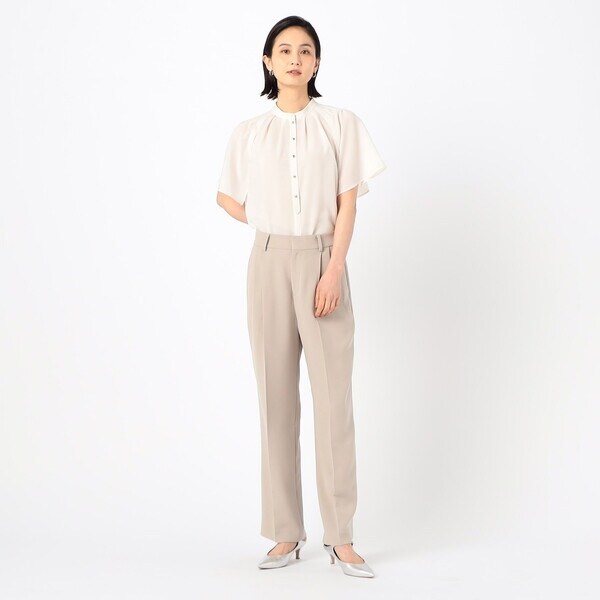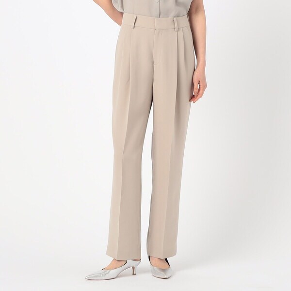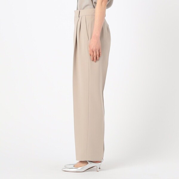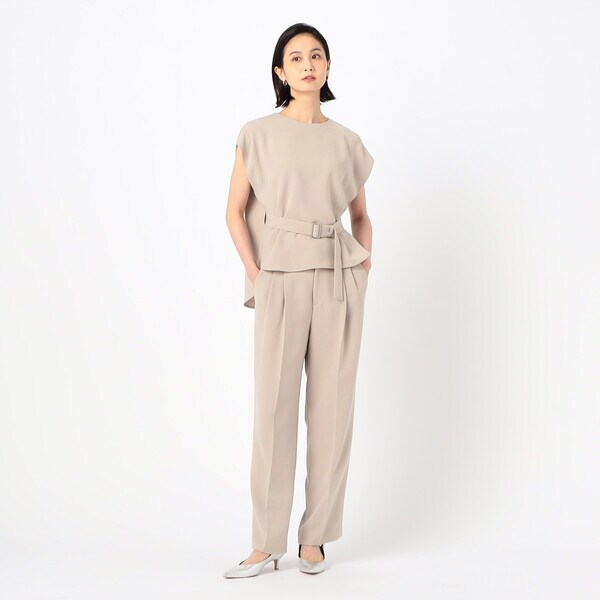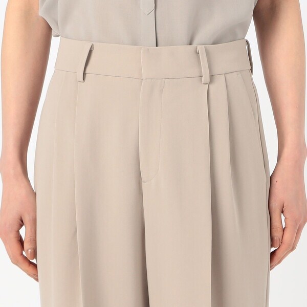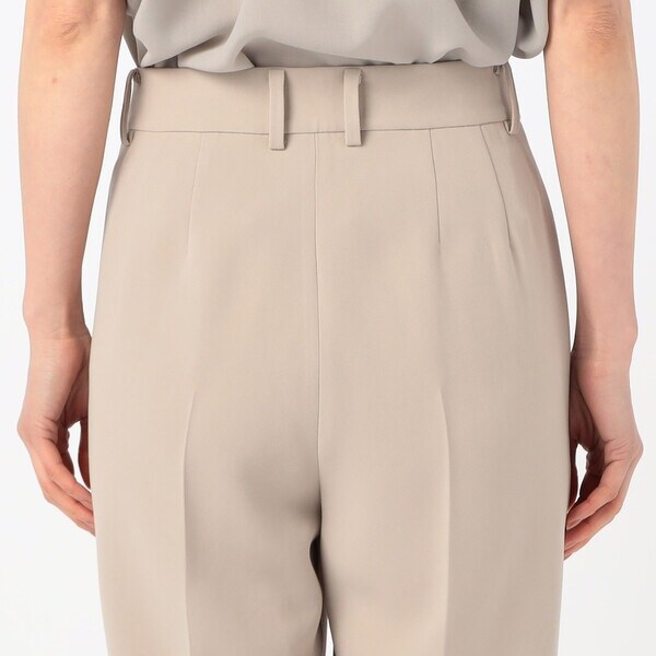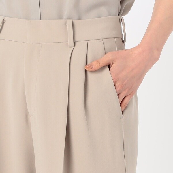 2タックの程よい分量のパンツは、ドレープ性のある素材により、きれいに落ちて脚長効果が期待できる絶妙なシルエットが旬な印象です。