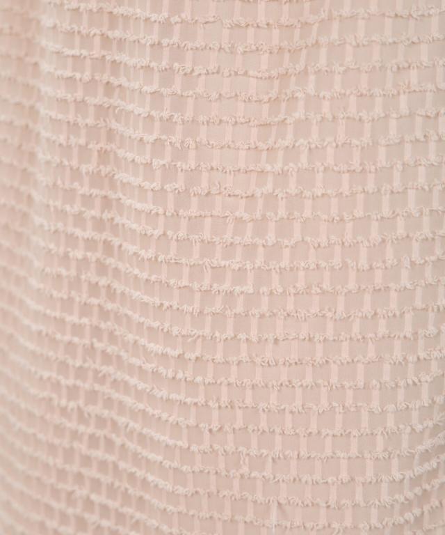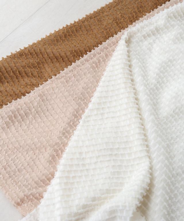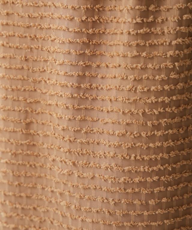 小さなフリンジが全体にあしらわれたポリエステル素材です。サラサラで皴になりにくく、手洗いもOKです。