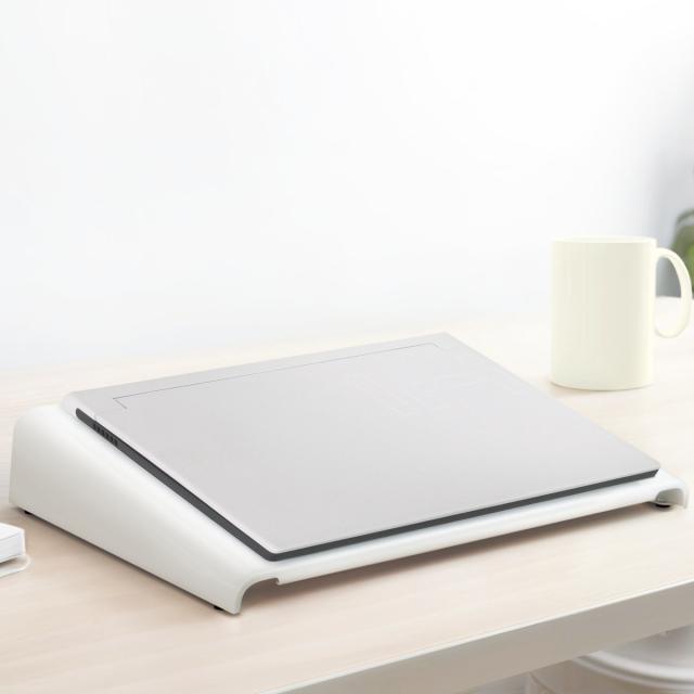 ノートパソコンをラックに乗せることで視線を上げ、無理のない姿勢で作業することができます。正しい姿勢は肩こりや頭痛の予防に繋がります。体にやさしく仕事もはかどり、ノートパソコンで長時間作業をする方におすすめです。