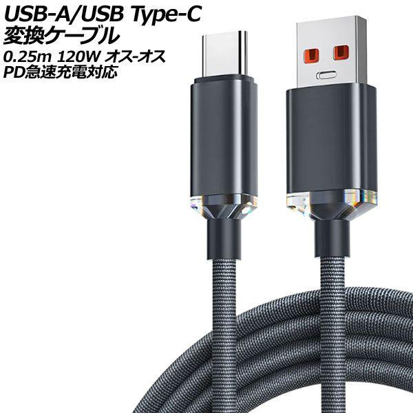 USB-A/USB Type-C 変換ケーブル ブラック 0.25m 120W ナイロン編みタイプ オス-オス PD急速充電対応 AP-UJ0990-BK-25CM