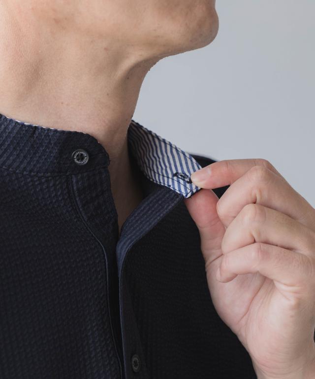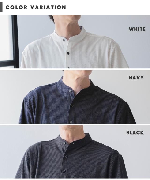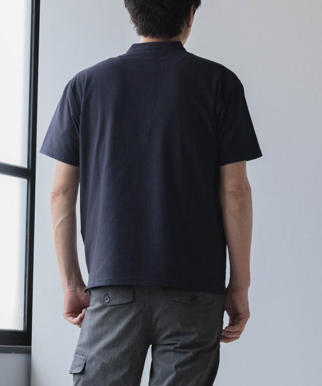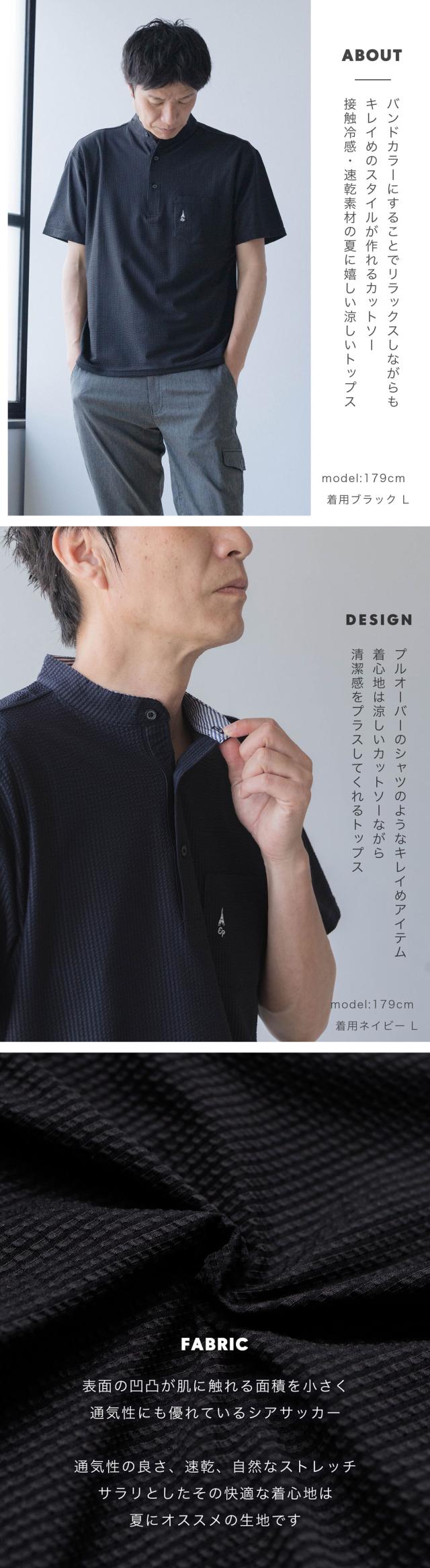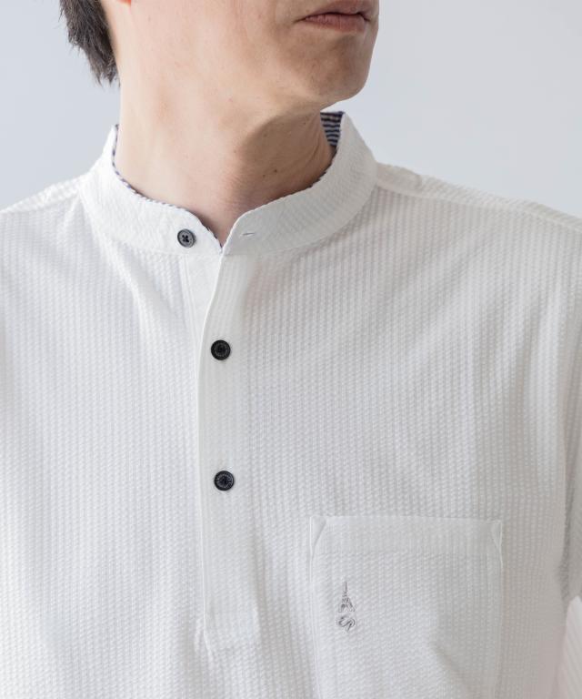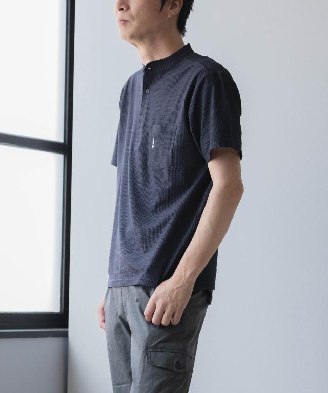 バンドカラー シャツ メンズ Tシャツ ポロシャツ シアサッカー 接触冷感 吸水 速乾 通気性 ELLE PLANETE エルプラネット ブランド ヘンリーネック 夏 秋 春 30代 40代 50代 60代 70代 ギフト プレゼント 贈り物 ラッピング 可能 ブラック ネイビー ホワイト ポケット 父の日