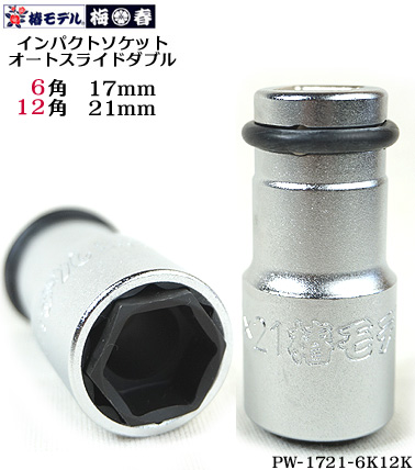 【椿モデル】12.7 インパクトソケット オートスライド ダブル PW-1721-6K12K 17mm6角 21mm12角インパクトレンチ用ソケット
