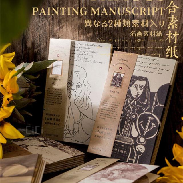 名画アートデザインペーパーセット 60枚 コラージュ 素材 ヴィンテージ ペーパー 素材紙 背景紙 アート 名画 作品 絵画 美術 人物画 線画 ゴッホ ダヴィンチ ミュシャ モネ モランディ 海外 紙もの モノトーン シンプル デコレーション 手帳デコ 素材 手帳 DIY