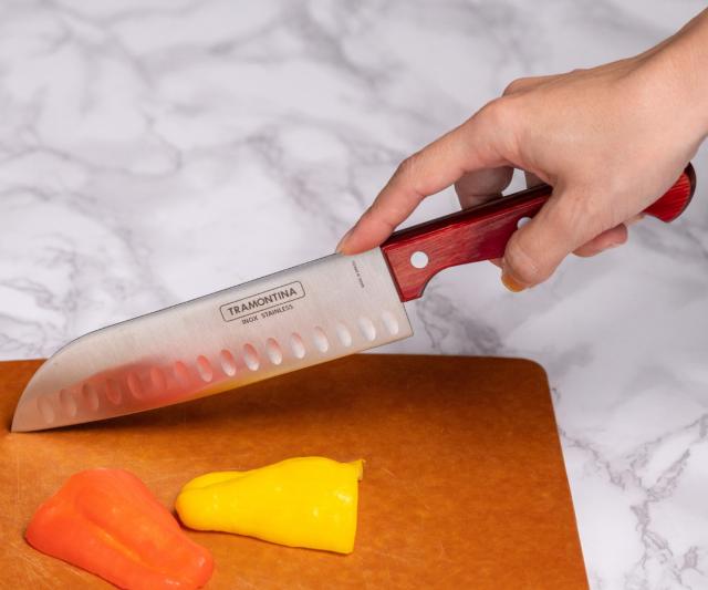 三徳包丁 17.6cm ポリウッド 食洗機対応 トラモンティーナ 7インチ ( TRAMONTINA 包丁 料理包丁 万能包丁 ステンレス 17.6センチ 176mm 三徳庖丁 文化包丁 木製ハンドル キッチンナイフ キッチンツール 錆びにくい 切れ味抜群 )