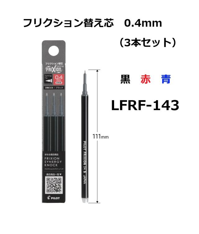 フリクションボールペン 替え芯 04 LFRF143B 330円 黒 赤 青 インク 3本入り 長さ 111mm 単色 シナジーノック フリクション 替え芯 フリクションポイント メール便 OK