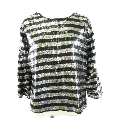 【中古】オットー OTTO スパンコールカットソー ボーダー 長袖 黒 シルバー 11 *A207 レディース
