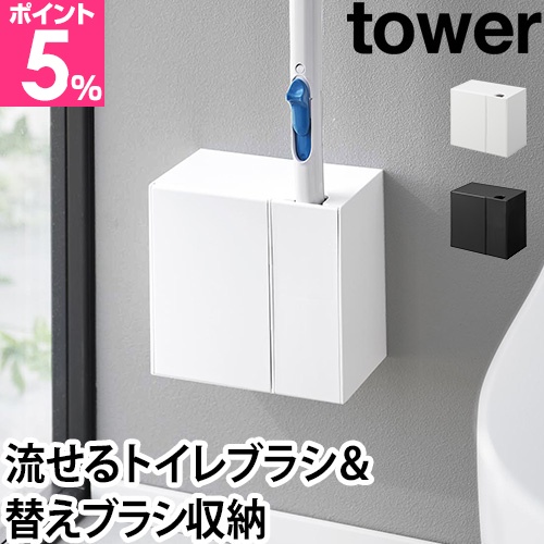 山崎実業 トイレブラシスタンド 流せるトイレブラシスタンド おしゃれ 掃除 トイレ 流せるトイレブラシ 収納 替えブラシ トイレスタンプ yamazaki タワーシリーズ ウォール流せるトイレブラシ&替えブラシホルダー タワー 石こうボード壁対応 tower 1840 1841 4903208018401 4903208018418