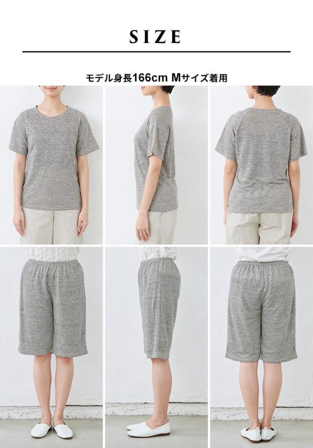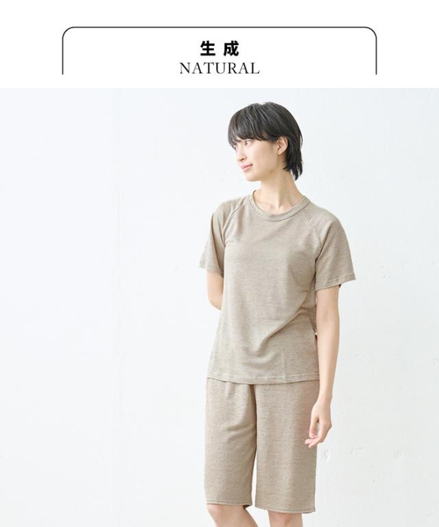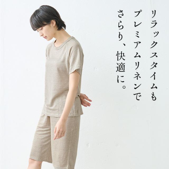 プレミアムリネン100% ラグラン 半袖 Tシャツ + ペチパンツ 2点セット 日本製 / ルームウェア レディース 夏 上下 夏用 薄手 パジャマ 40代 50代 60代 リネン100% 麻100% 涼しい パジャマ 寝間着 天然繊維 大きいサイズ 吸水 速乾 抗菌