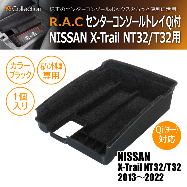 【在庫限】日産 エクストレイル NT32/T32 2013-2022 R.A.C 車種専用センターコンソールトレイ Qi(チー)機能付き(商品コード:500768)