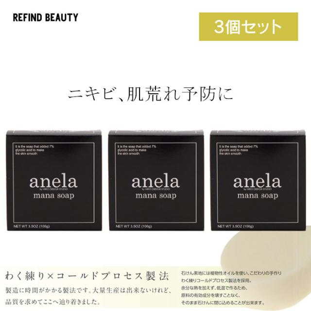 商品名:100g3個入り】マナソープ AHAグリコール酸7%配合 mana soap anela 100g ニキビ 肌荒れ 大人ニキビ 無添加 枠練り コールドプロセス 手作り 石鹸 洗顔 乾燥 ピーリング ネット付き