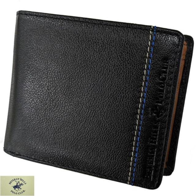 〓BEVERLY HILLS POLO CLUB〓 二つ折り財布/中ベラ付◆牛革◆ブラック◇ ポスト投函便可 61B403-10