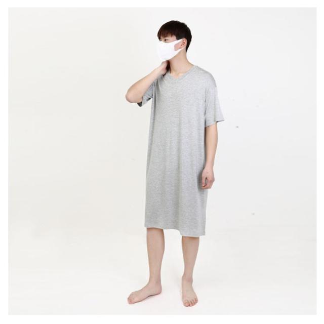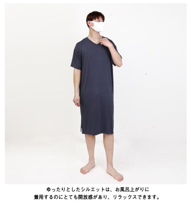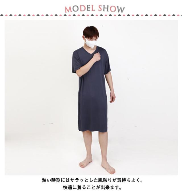パジャマ メンズ ルームウェア モダール パジャマ 半袖 夏物 ワンピース スリーパー 大きいサイズ 無地 柔らかい 寝巻き Vネック 部屋着 通気性 薄手 リラックス感