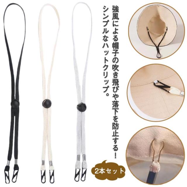 フック式 風飛び防止 2本セット 帽子クリップ ハットキーパー 帽子クリップ あご紐 帽子ストッパー 帽子キーパー シンプル ユニセックス 落下防止 男女兼用 取り付け簡単 長さ調節 アウトドア 旅行