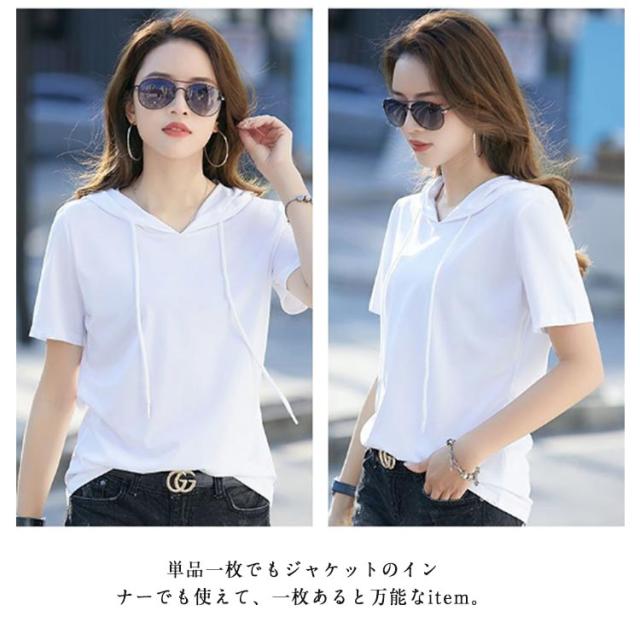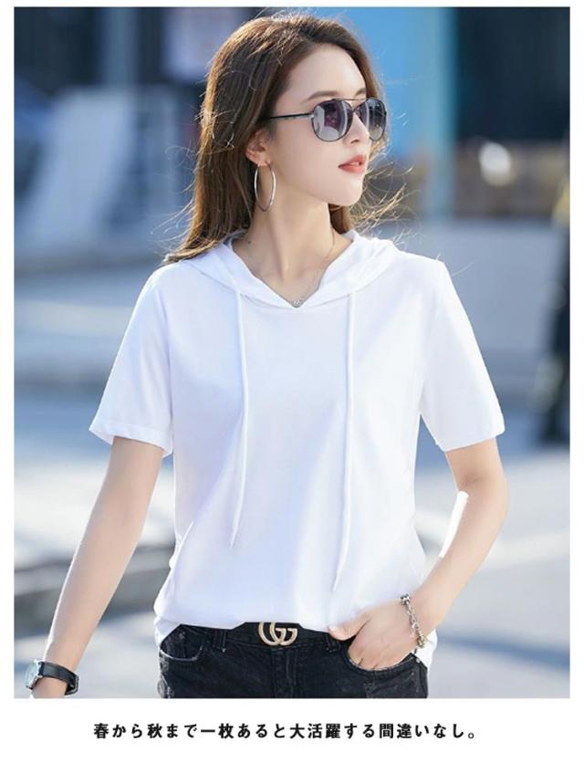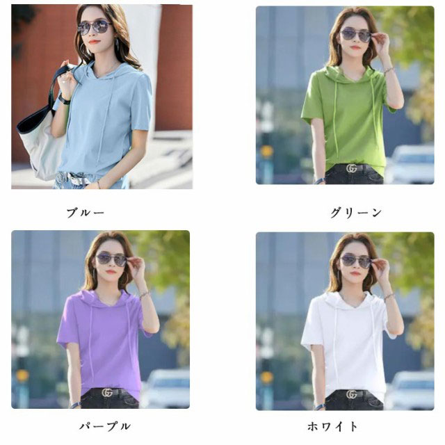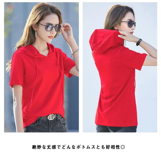 フード付き 全8色!フード付きtシャツ 全8色!フード付きtシャツ トップス パーカー 夏 カットソー tシャツ 半袖 シンプル 無地 20代