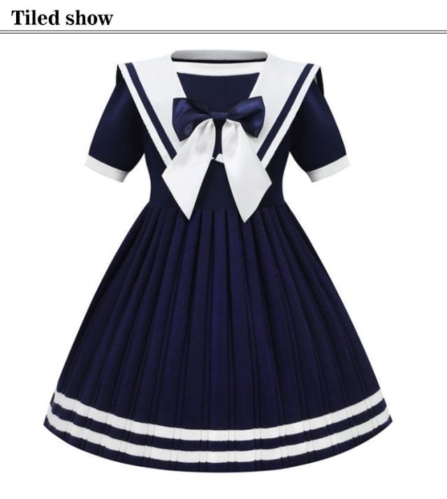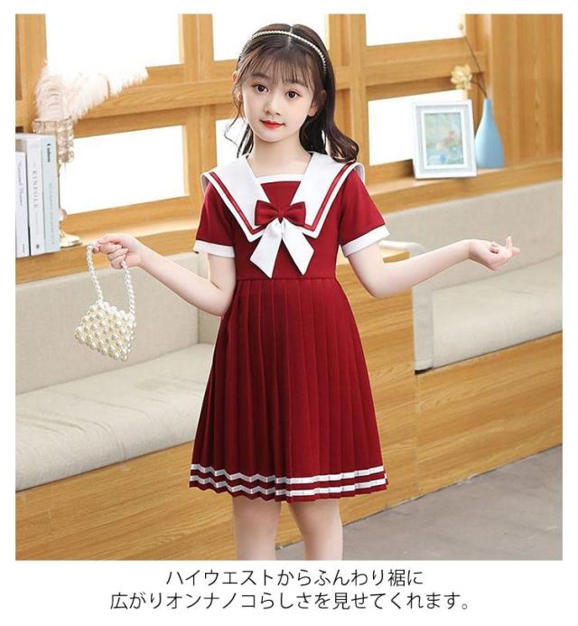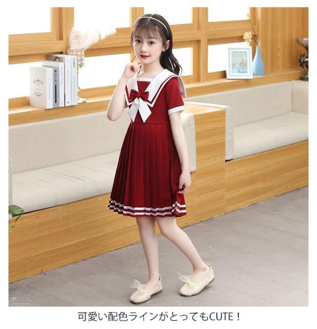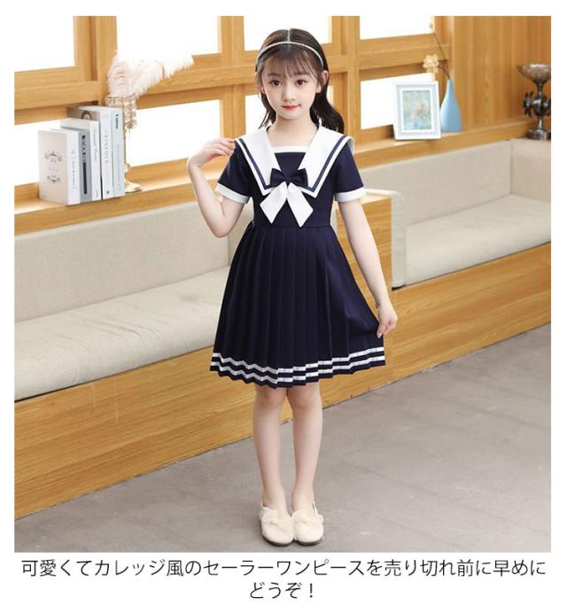 可愛い 半袖 セーラーワンピース リボン付き 制服 ブルー ライン入り 膝上丈 高校生 ワンピース 小学生 可愛い ライン入り かわいい セーラー襟 セーラー 夏 春 子供服 ネイビー ロングワンピース 大きいサイズ 通学 お出かけ 旅行 プレゼント ギフト