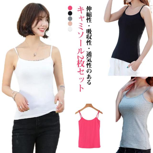 キャミソールセット キャミソール 肌着 2枚セット 重ね着 通気性 キャミ 綿 下着 インナー 薄手 トップス 汗吸収 下着 無地 柔らかい シンプル レイヤード 部屋着 ルームウエア ノースリーブ 大人 女性 大きいサイズ