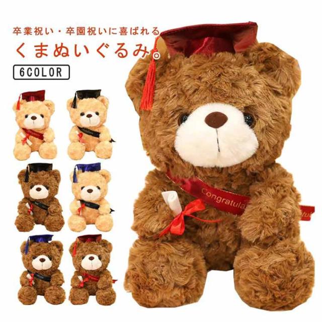 | 卒業祝い・卒園祝いに喜ばれるくまぬいぐるみ。 テディベアが卒業帽子をかぶってるよ! 卒業祝い、卒園祝い、入学祝い、合格祝いなどのプレゼントに | |