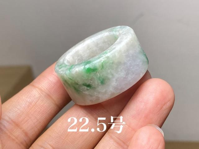 L6-126 一点物 白底花緑 薄ラベンダー 22.5号 ミャンマー産天然 A貨 本翡翠 くりぬき リング ペンダント