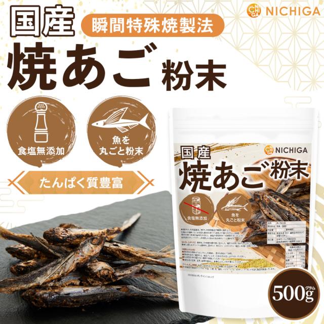 国産 焼あご粉末 500g 【メール便専用品】【送料無料】 瞬間特殊焼製法 魚を丸ごと粉末 食塩無添加 うま味と香りをギュッと凝縮 [05] NICHIGA(ニチガ)