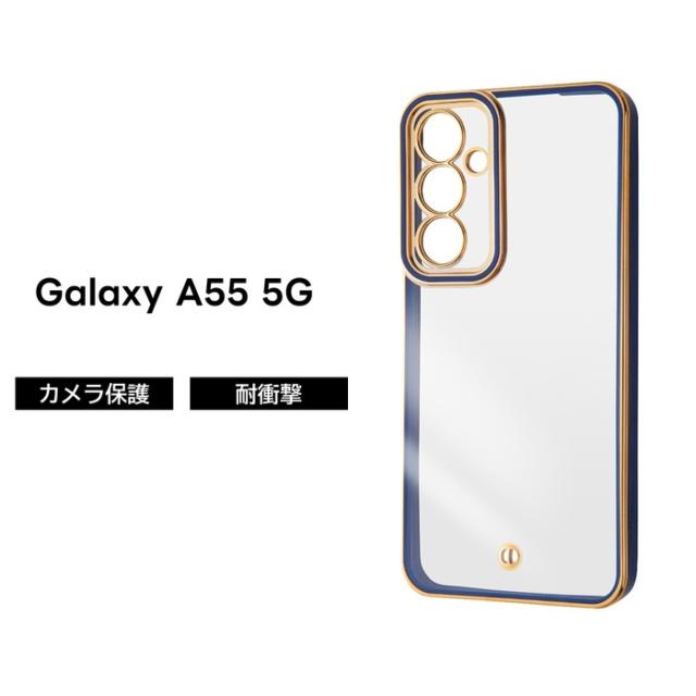 Galaxy A55 5G ケース クリア GalaxyA55 SC-53E SCG27 ギャラクシーA55 ネイビー ゴールド フレーム ソフト ソフトケース スマホケース 透明
