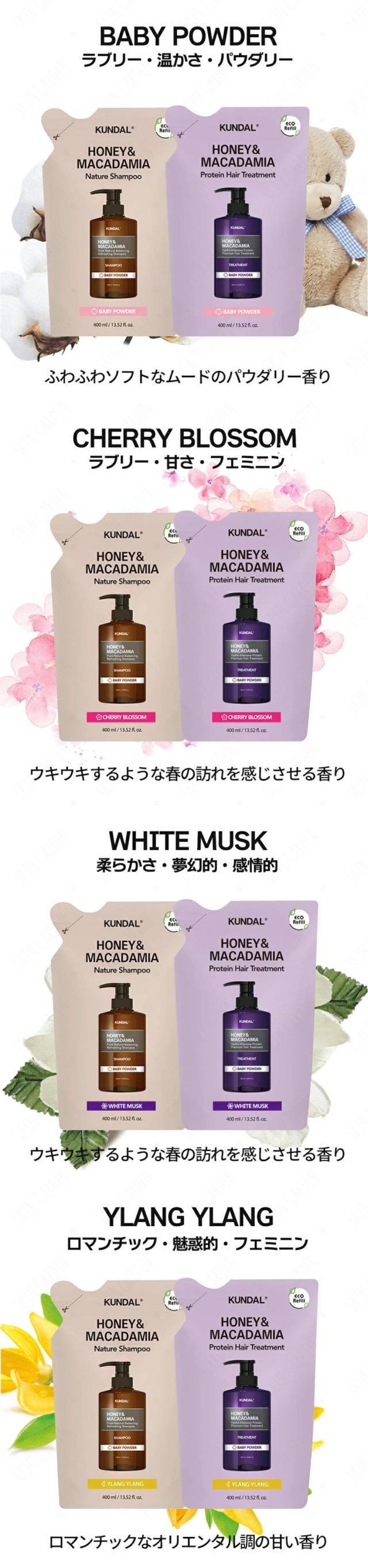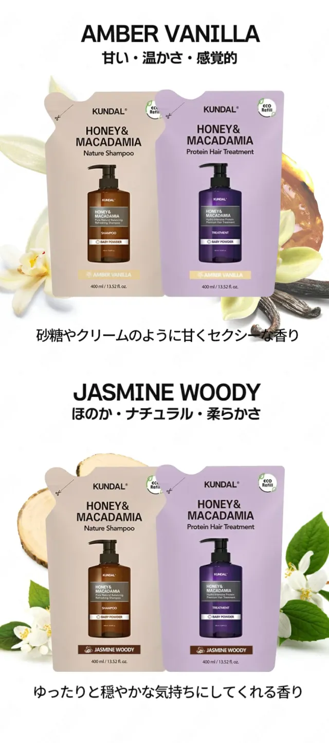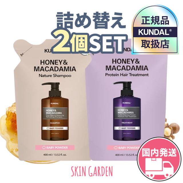 KUNDAL 正規品扱い店 [国内発送] 1+1 詰め替え2種セット ハニーマカデミア ネイチャー シャンプー プロテイントリートメント 400ml 韓国コスメ