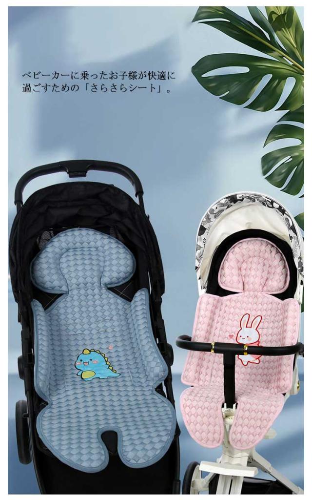 | ベビーとの夏のお散歩、お出かけに大活躍!! ベビーカーに乗ったお子様が快適に過ごすための「さらさらシート」。 やわらかな枕付きなので、ふらつきがちなベビーの頭をサポートします。 薄く軽量、汗をかく夏場でもムレを起こしにくいため、夏や湿気の多い時期でも背中を快適に! こちらのアイテムは接触冷感生地を採用し、快適な乗り心地を実現します。 ベビーカーの他、バウンサーやチャイルドシート、お姉ちゃんお兄ちゃんのキッズシートにも使えます。 | |