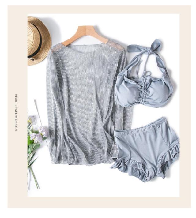 オーバーサイズ ハイウエスト ラッシュガード セパレート ビキニ 3点セット 水着 長袖 20代 ママ水着 水着 大きいサイズ レディース フリル 体型カバー ロンT 30代 40代 セクシー おしゃれ 大人可愛い きれいめ