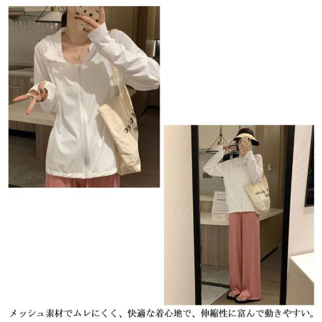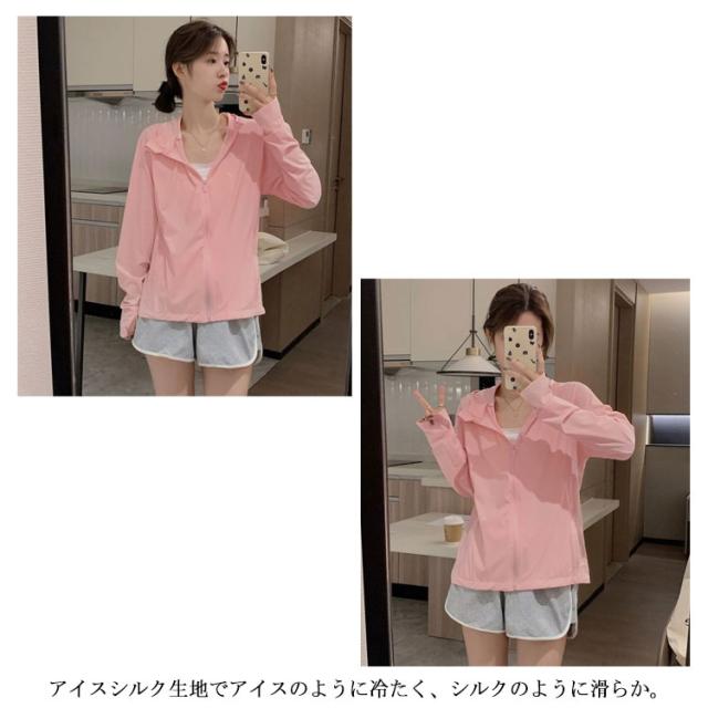 長袖 レディース uvカット uvパーカー 冷感 ストレッチ パーカー ラッシュガード 羽織り 指穴 指穴 涼しい UPF50+ アイスシルク トップス アウター 体型カバー 通気 メッシュ 滑らか 速乾 長袖 ZIPパーカー 日焼け防止服 紫外線対策 春夏 uvカット 夏