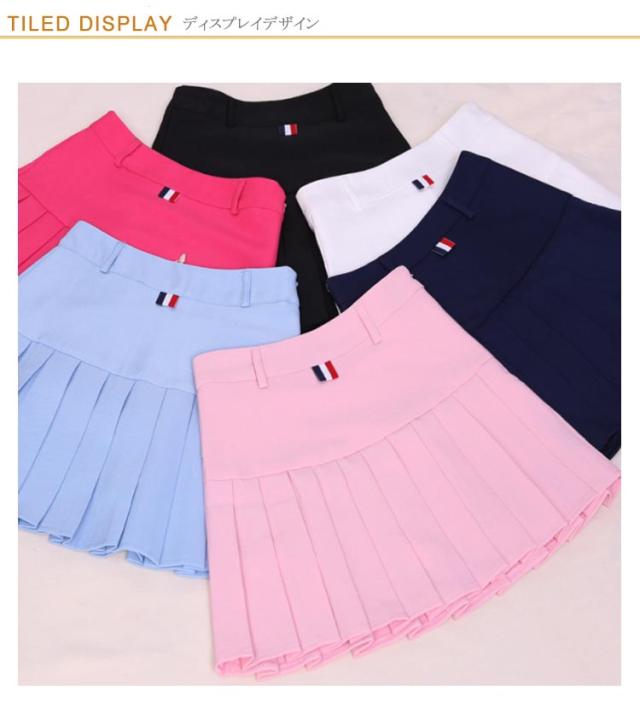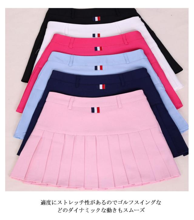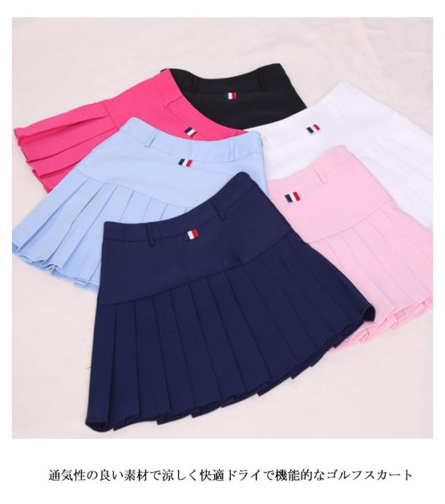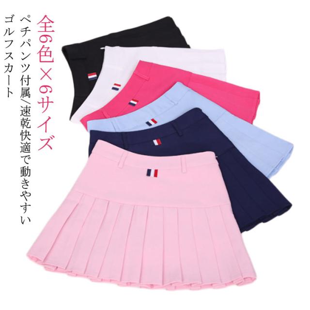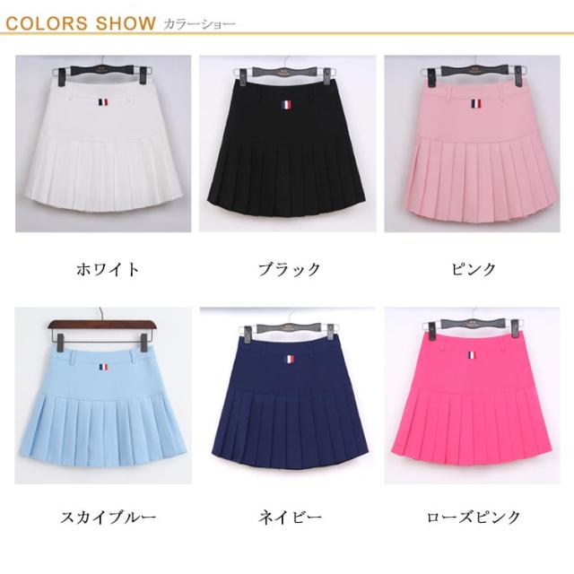 インナーパンツ付スカート 春夏 ゴルフウェア スカイブルー ゴルフ レディース ペチパンツ付属 スカート 丈短め ショート丈 ゴルフスカート レディース かわいい ホワイト ブラック ピンク ゴルフスカート ネイビー ローズピンク