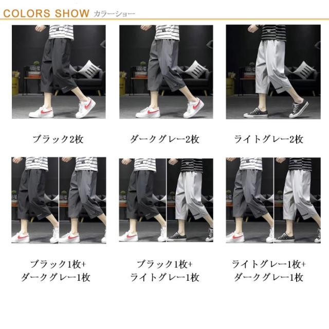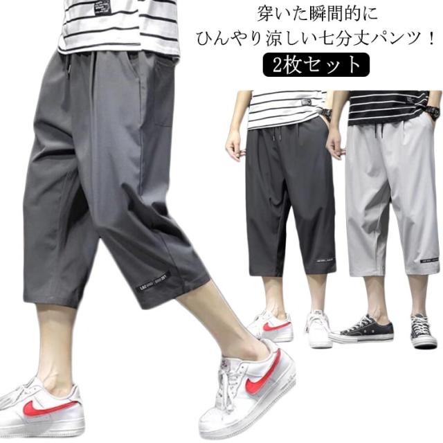 | 2枚セット 穿いた瞬間的にひんやり涼しい七分丈パンツ! 接触冷感素材で汗ばむ季節もサラッと快適◎ ゴム+紐仕様のウエストがリラックスな印象をくれます。 カジュアルなTシャツなどを合わせてスタイルUP! | |