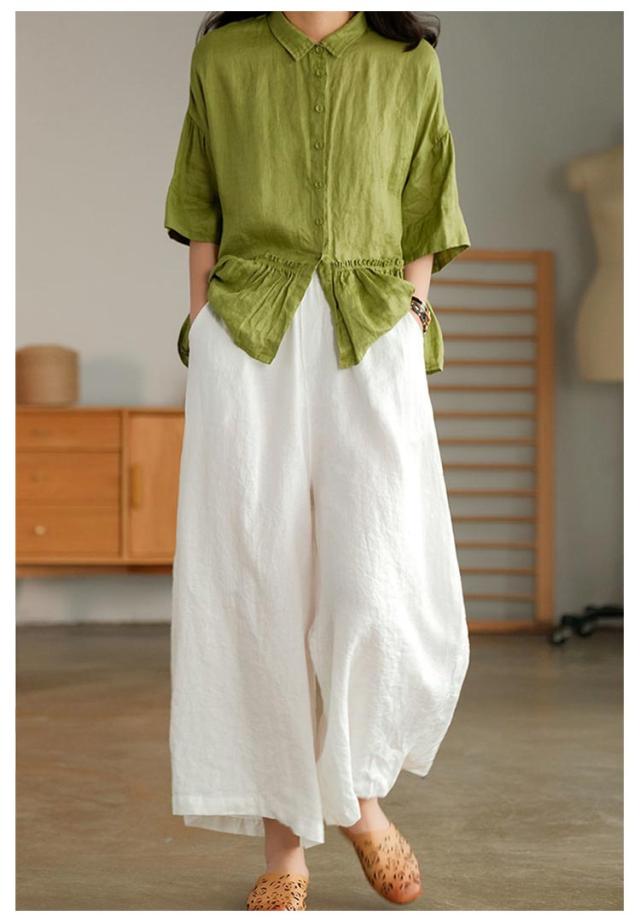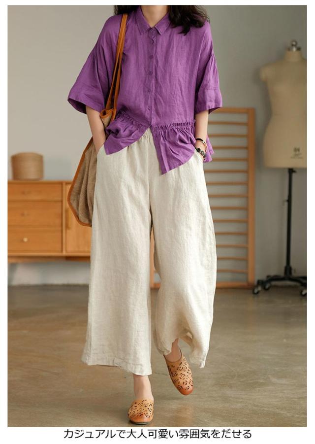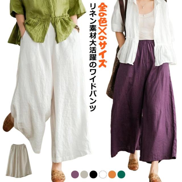 | 全6色×6サイズ リネン素材大活躍のワイドパンツ aラインで体型カバー 美脚にみえる ゆったり楽チンで部屋着やワンマイルウェアにもなる カジュアルで大人可愛い雰囲気をだせる | |