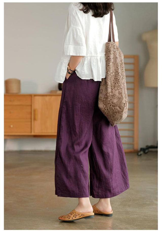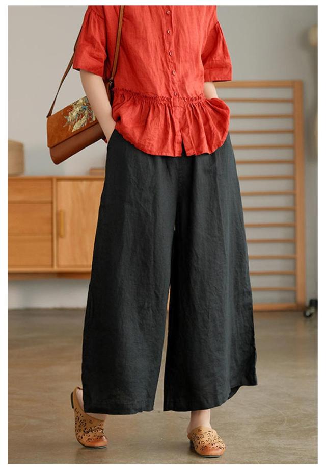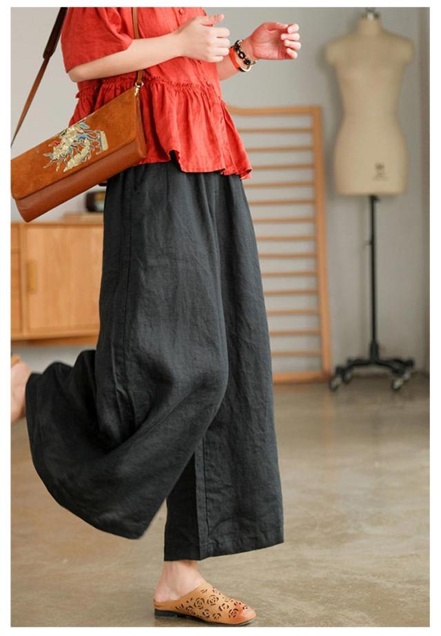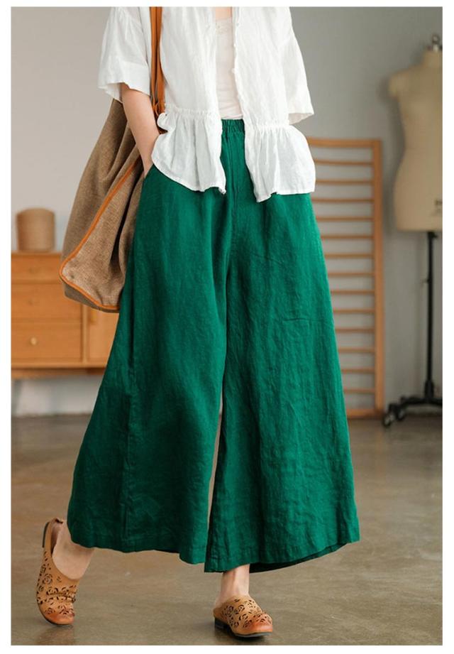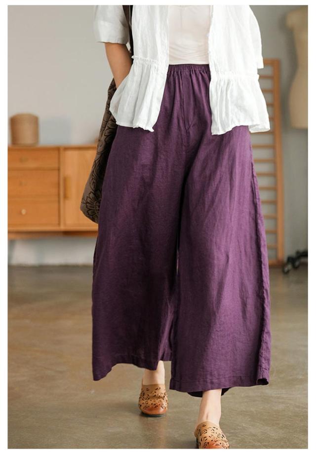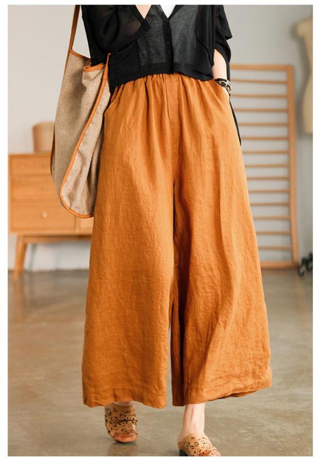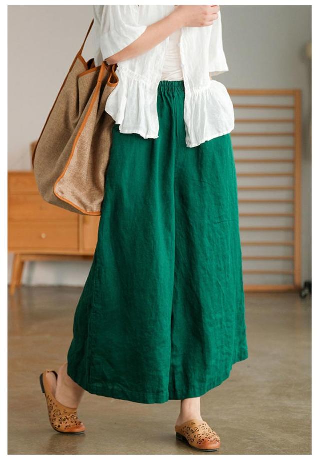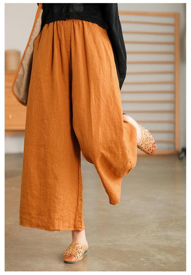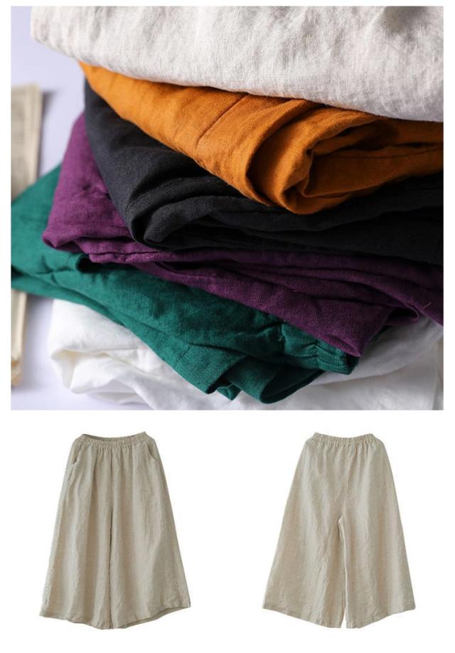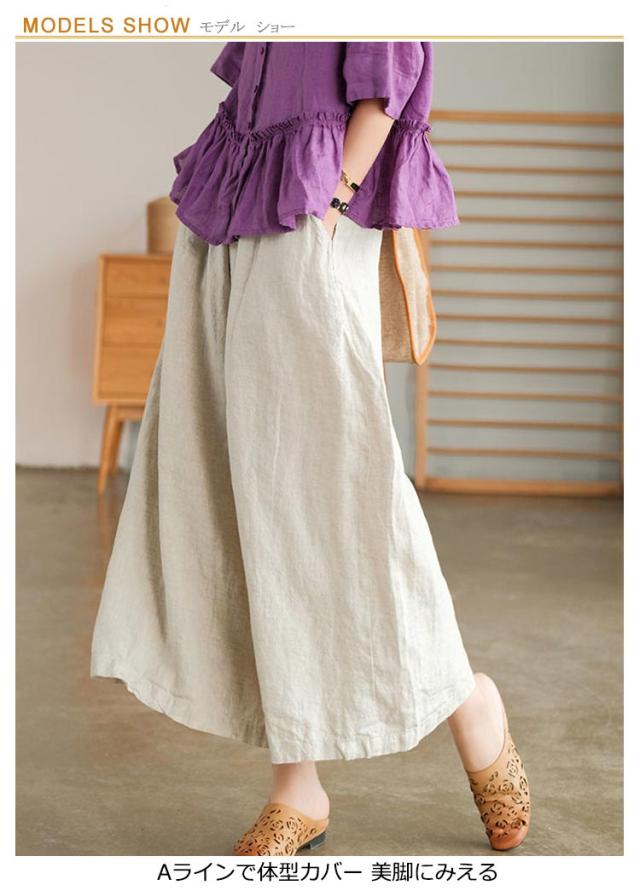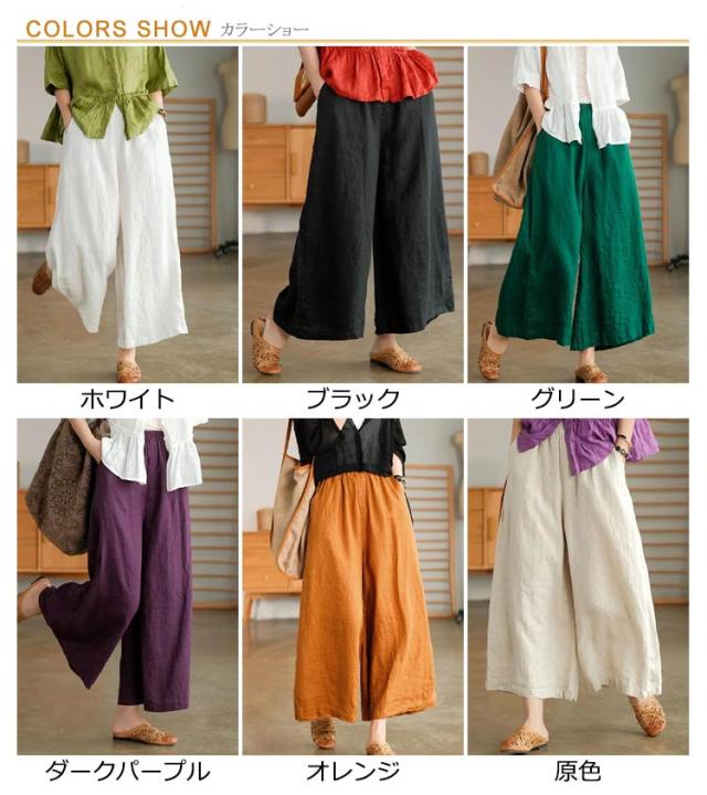 麻 おしゃれ スカート フレアスカート スカンツ リネン ウエストゴム ガウチョパンツ ワイドパンツ レディース ワイドパンツ リネン ワイド 大きいサイズ リネンパンツ スカーチョ リネン 大人 ボトムス 春 夏 ホワイト ブラック グリーン ダークパープル オレンジ