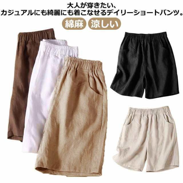 ショートパンツ 涼しい 5分丈 麻 リネン リネン ワイドパンツ リネン パンツ パンツ 麻 レディース レディース 無地 ハーフパンツ ウェストゴム 綿麻 部屋着 大きいサイズ ゆるパンツ ナチュラル ホワイト ブラック ブラウン