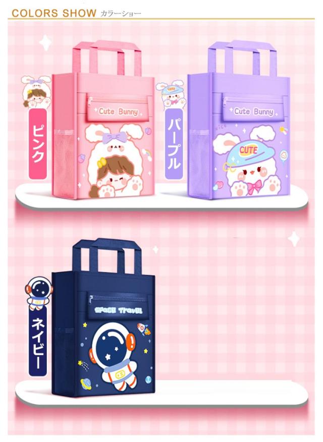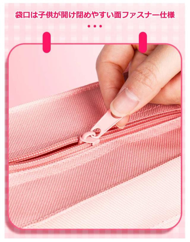 | 楽譜などの大判サイズも入るマチ付きバッグ お財布などの小物が入る外ポケット付き 袋口は子供が開け閉めやすい面ファスナー仕様 | |