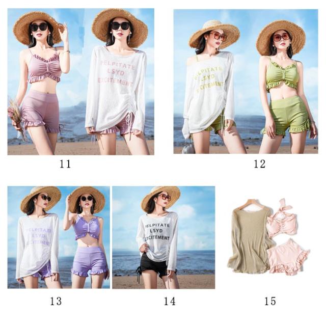 3点セット おしゃれ ビキニ フリル 水着 ロンT ハイウエスト 長袖 オーバーサイズ シアートップス付き 体型カバー ラッシュガード レディース ママ水着 大きいサイズ 20代 30代 水着 セクシー 40代 大人可愛い きれいめ