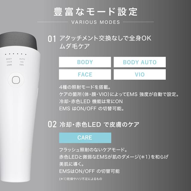 4種の照射モード(BODY/BODY AUTO/FACE/VIO)を搭載。