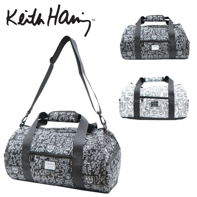 【KeithHaring】15806 2WAYダッフルバッグM 鞄 ボストンバッグ 部活 旅行 修学旅行 キースヘリング ユニセックス 男女兼用 ブラック ホワイト 使いやすい かわいい ストリート 便利 中学生 高校生 大学生