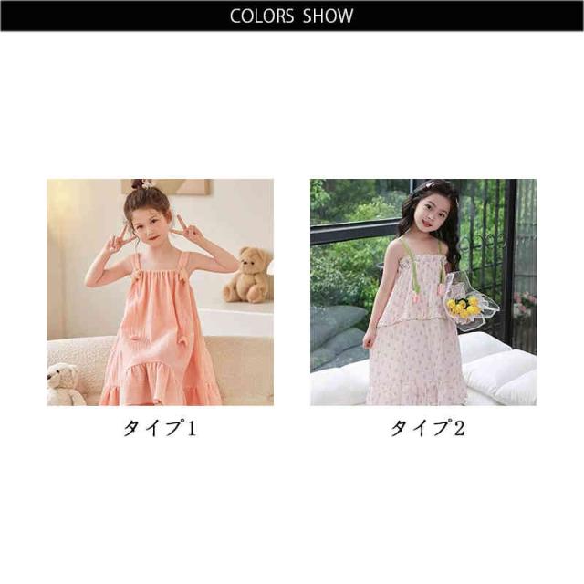 ワンピースパジャマ 寝間着 パジャマ キッズ 子供服 ゆったり 夏 ガールズ 女の子 可愛 子供服 部屋着 キャミソールパジャマ 子供用 春 薄手 ルームウエア ノースリーブ かわいい ナイトドレス 女の子 おしゃれパジャマ 子供服ワンピース