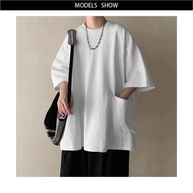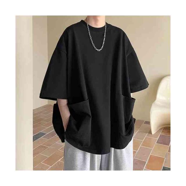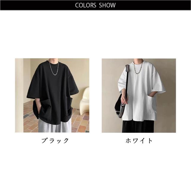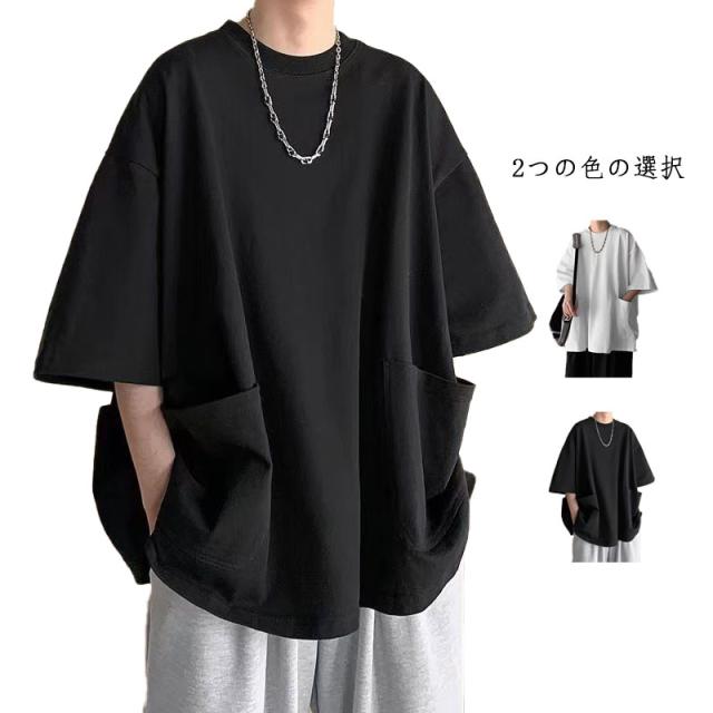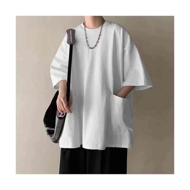 七分袖Tシャツ オーバーサイズ ストリート Tシャツ ビッグtシャツ メンズ tシャツ 大きサイズ シンプル トップス カットソー インナー Tシャツ ポケット付き 送料無料 無地 カジュアル 普段着