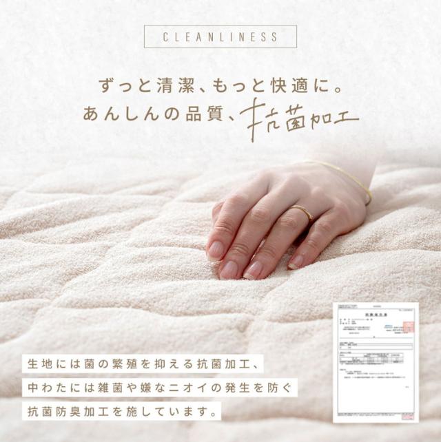 生地には菌の繁殖を抑える抗菌加工、中わたには雑菌や嫌なニオイの発生を防ぐ