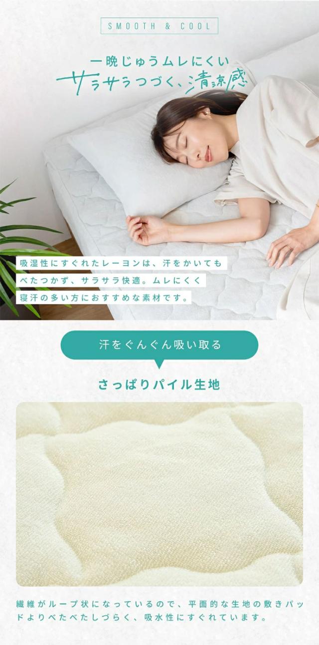 さらさらレーヨンパイル 一体型ボックスシーツ シングル ほんのり涼しい 敷きパッド さらさら レーヨン パイル タオル地 抗菌 ベッドパッド 冷感寝具 さっぱり ベッドシーツ 冷感 ボックスシーツ(代引不可)【送料無料】