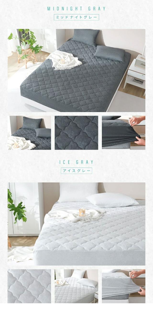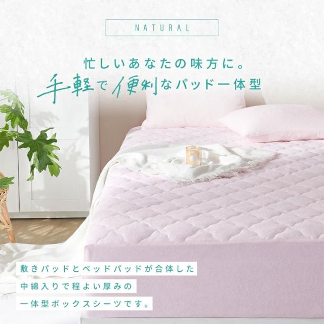 敷きパッドとベッドパッドが合体した 手軽で便利な一体型ボックスシーツ。