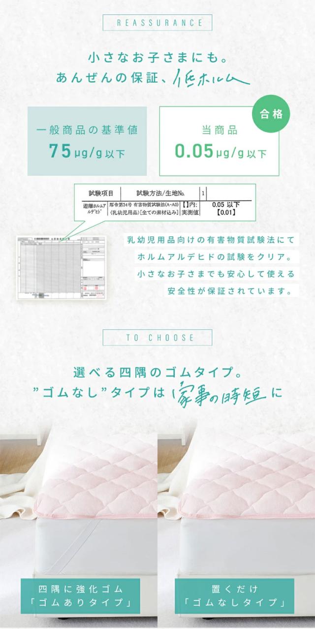 ゴムなし敷きパッドは滑り止め付きで、置くだけだから装着ラクラク。
