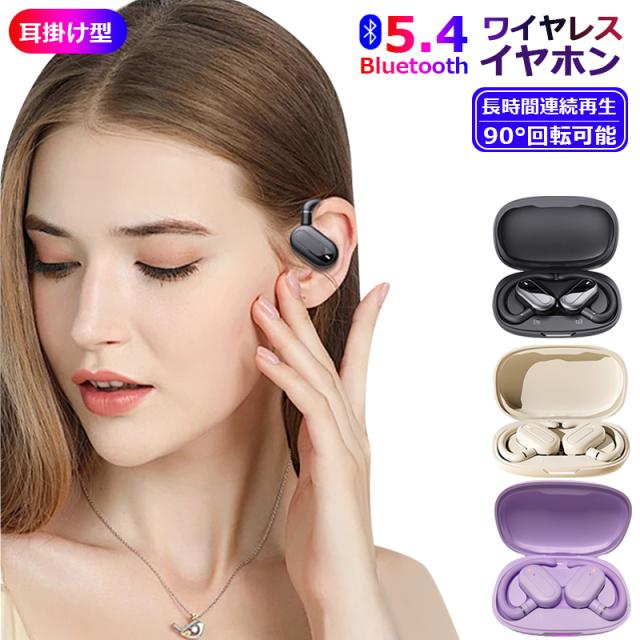 ワイヤレスイヤホン 耳掛け型 Bluetooth5.4 防水防汗 90°回転可能 低遅延 長時間連続再生 HiFi高音質 安定装着 クリア通話 小型軽量 自動ペアリング