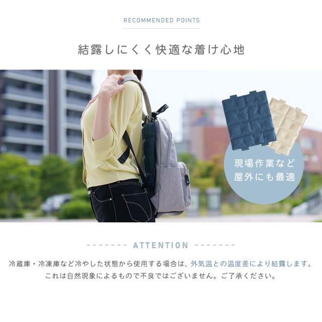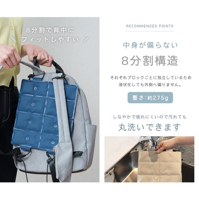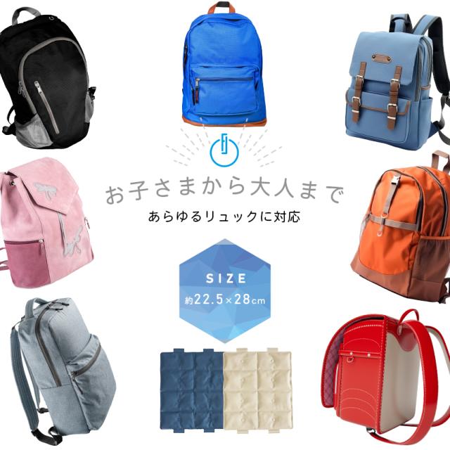 | お子さまから大人まで、あらゆるリュックに対応! 新素材のPCMを使用し28℃以下で自然凍結。 |
