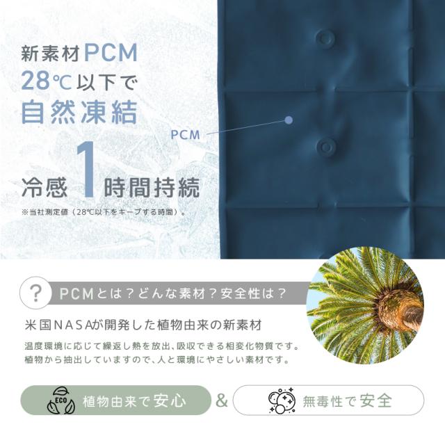 | 【PCMとは?そんな素材?安全性は?】 米国NASAが開発した植物由来の新素材です。 温度環境に応じて繰返し熱を放出、吸収できる相変化物質です。 植物から抽出していますので、人と環境にやさしい素材です。 |