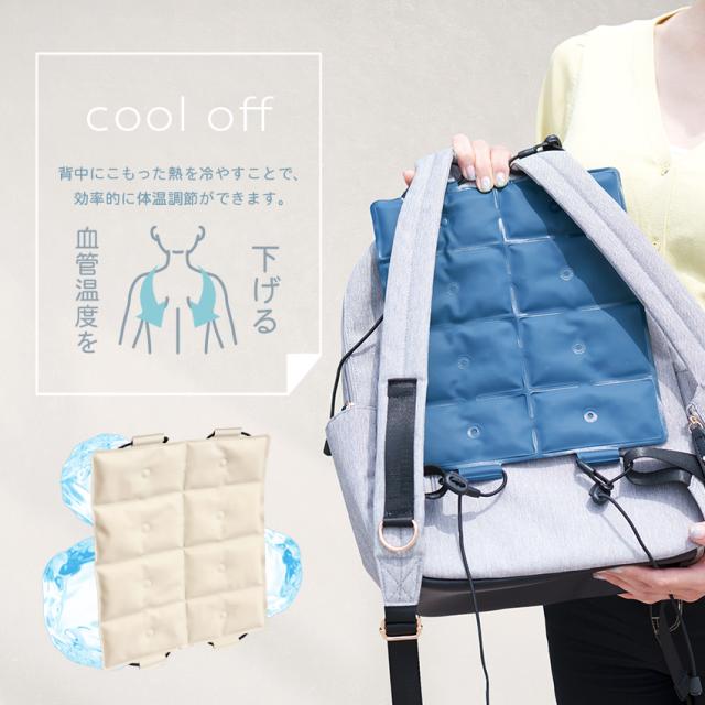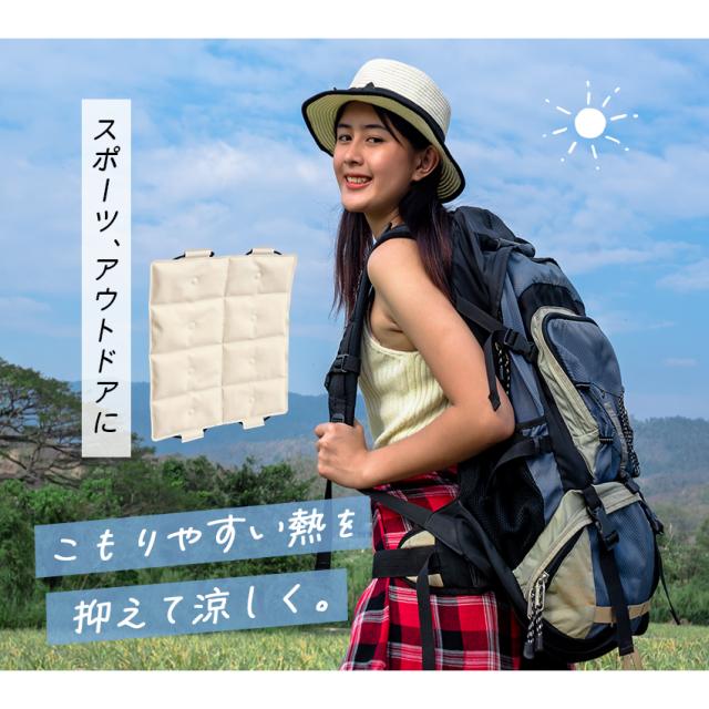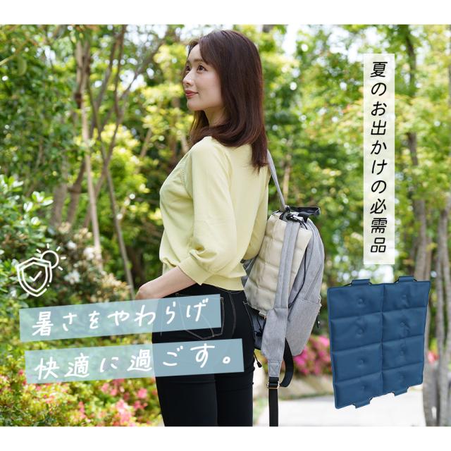 | 暑い季節の背中の蒸れをすっきり涼しく。 リュックに付けるだけの簡単暑さ対策に。 |